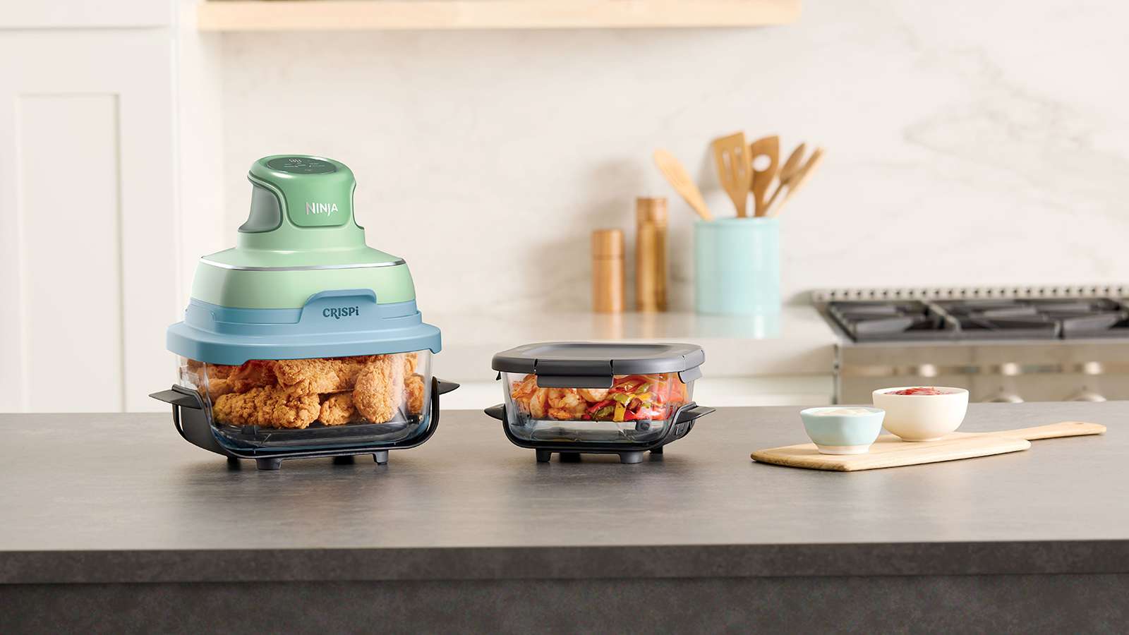 Meet the Ninja CRISPi —our revolutionary 4-in-1 portable glass air fryer cooking system that delivers the power of a full-sized air fryer in a sleek, compact design. Whether you're at home, in the office, or on the road, CRISPi makes it easy to enjoy your favourite meals wherever life takes you. With its ultra-portable build and lightweight 1700-watt PowerPod, you can snap it onto one of the included glass containers to whip up everything from family-sized feasts to solo snacks.