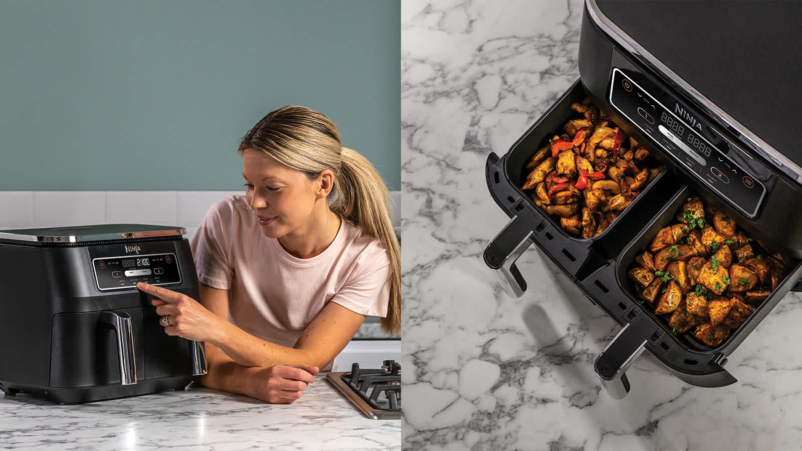 Meet the air fryer that cooks 2 foods, 2 ways, and finishes at the same time. Ninja’s popular Dual Zone Air Fryer is now available with 4 cooking functions – Air Fry, Max Crisp, Roast and Reheat. The perfect first Dual Zone air fryer for couples and families, with easy-to-use digital controls and endless meal-making possibilities.