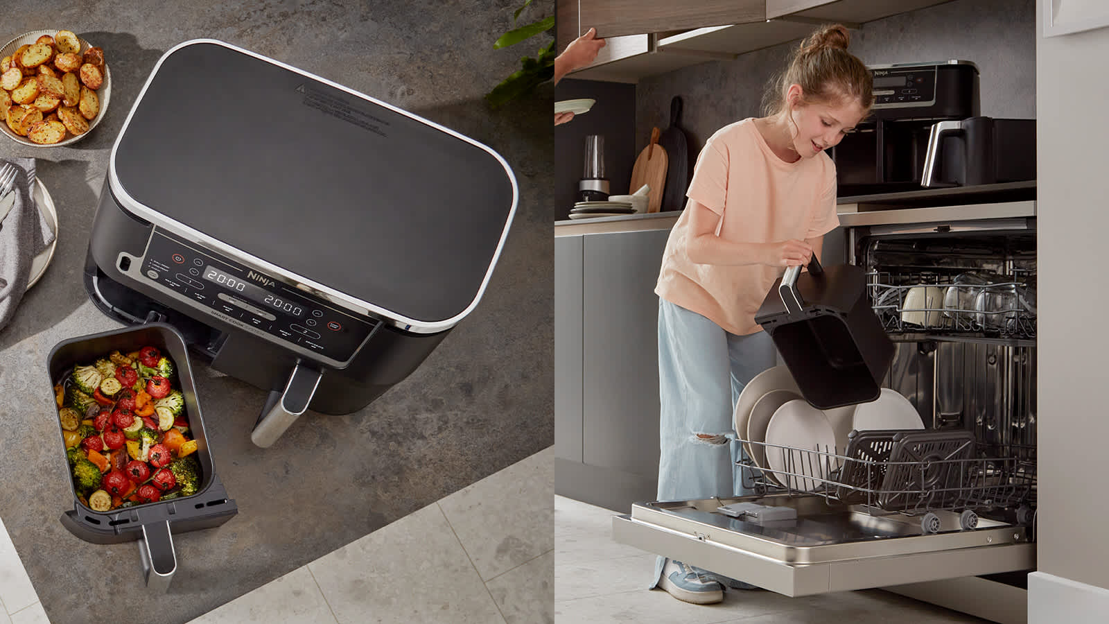 Want to Bake in one drawer and Air Fry in the other? No problem! Different cooking times for roast chicken and crispy fries? Both zones finish cooking at the same time, so you can enjoy freshly-cooked mains and sides together – no need to use different appliances or let your side go cold while your main finishes cooking!