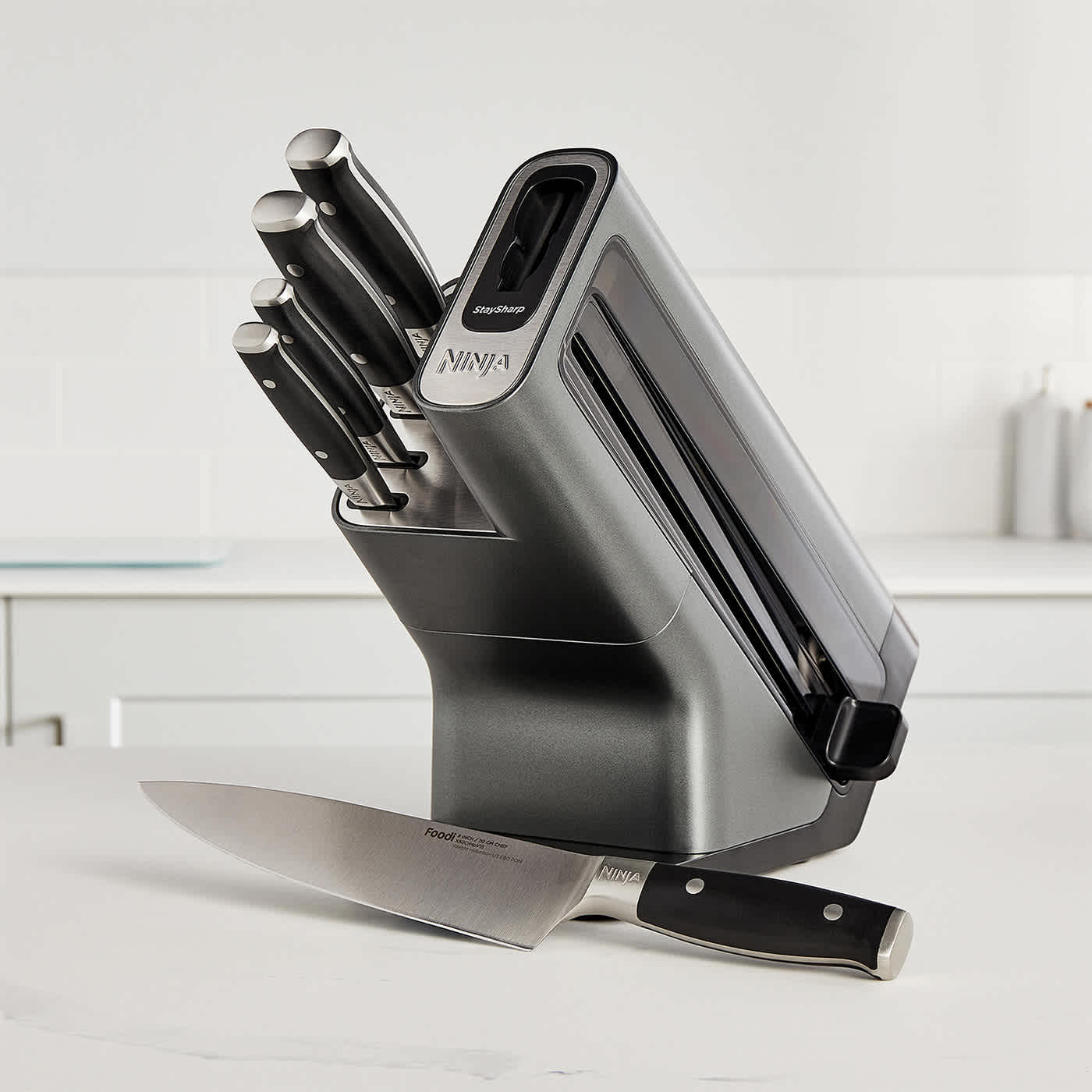 Never experience the frustration of a blunt knife again. Maintain incredible sharpness with an integrated StaySharp knife sharpener conveniently built into the storage knife block. This innovative at-home blade maintenance solution delivers continuously sharp performance, time after time.