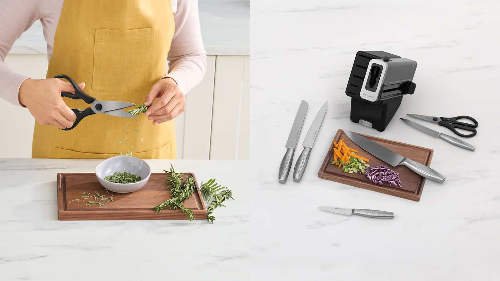 Kitchen & Herb Scissors – These versatile stainless-steel scissors are perfect for snipping herbs, opening packaging and a wide variety of kitchen tasks. They also come apart for easy deep cleaning. (Do not use the sharpener on scissors.)