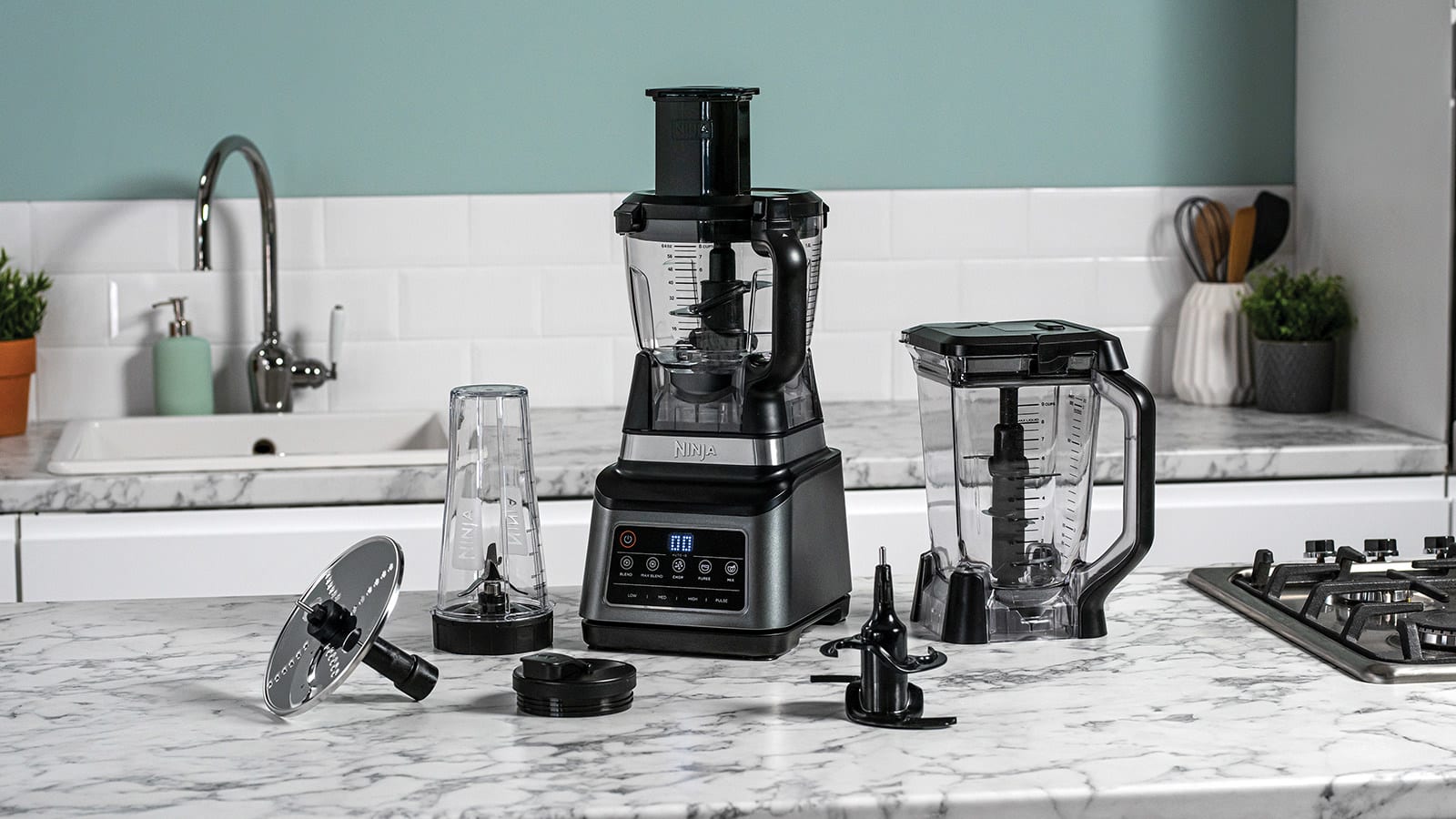 Easily create anything from dips to drinks, doughs to desserts. This next-generation Ninja food processor is a food processor, multi-serve blender and personal blender in one, complete with interchangeable blades and attachments.