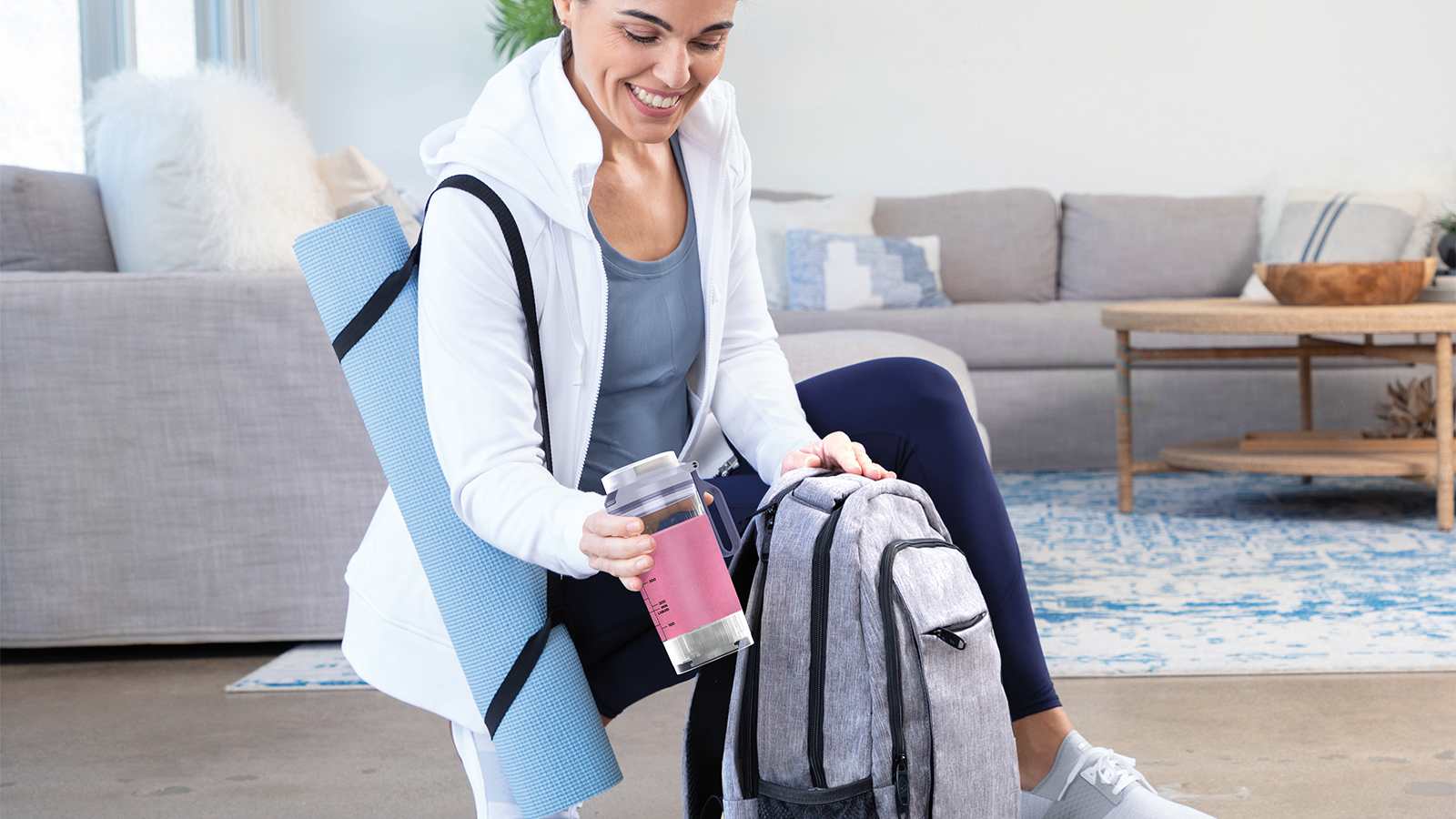 Included in the box: Blast Max motor base, 570ml* blending cup with built-in CrushBlade, leak-proof sip lid, charging cable and Recipe Guide.