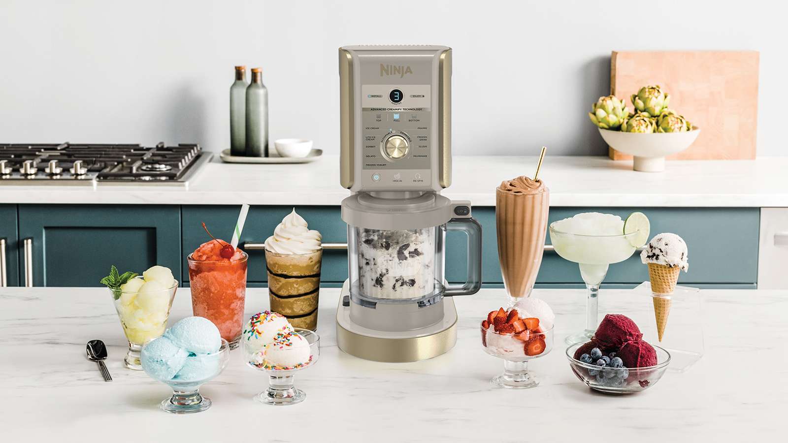 Motor Base with Dual-Drive Motors: Advanced CREAMify Technology turns almost anything into a frozen or creamy treat using 10 One-Touch Programs.