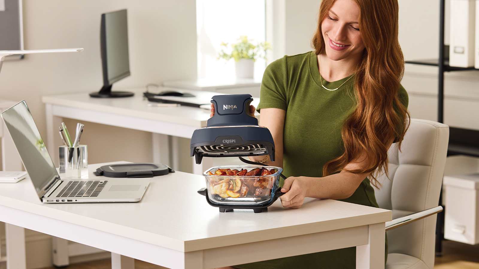 And when life gets busy, CRISPi keeps up. Its grab-and-go portability means you can take it anywhere—from your kitchen to your desk, or even on a weekend getaway. Wherever your day takes you, the Ninja CRISPi is ready to help you cook clean, eat well, and stay in control of your meals.