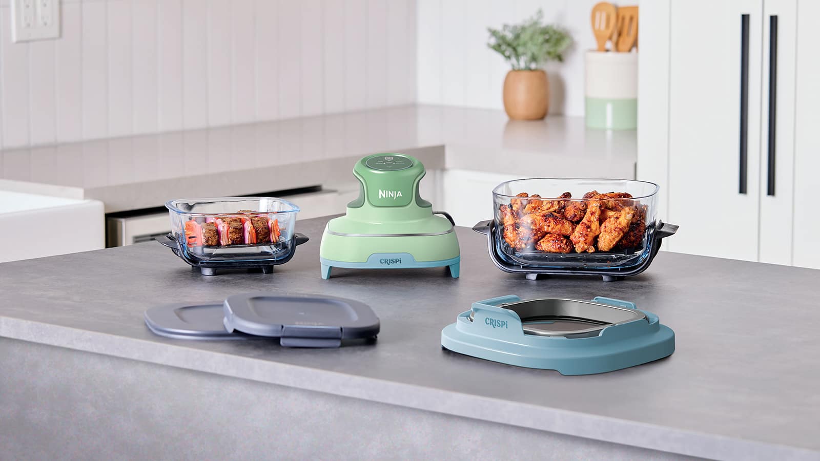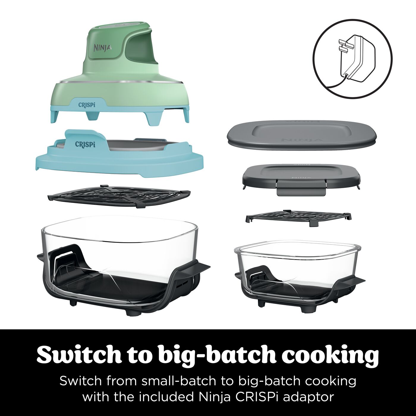 Meet the Ninja CRISPi —our revolutionary 4-in-1 portable glass air fryer cooking system that delivers the power of a full-sized air fryer in a sleek, compact design. Whether you're at home, in the office, or on the road, CRISPi makes it easy to enjoy your favourite meals wherever life takes you. With its ultra-portable build and lightweight 1700-watt PowerPod, you can snap it onto one of the included glass containers to whip up everything from family-sized feasts to solo snacks.