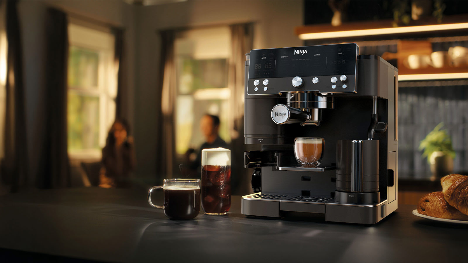 Meet Luxe Café Premier, the bean-to-cup Ninja coffee machine that helps you make barista-quality drinks in minutes. This versatile 3-in-1 espresso, cold brew and filter coffee machine takes the guesswork out of coffee and includes a built-in grinder for extra convenience.