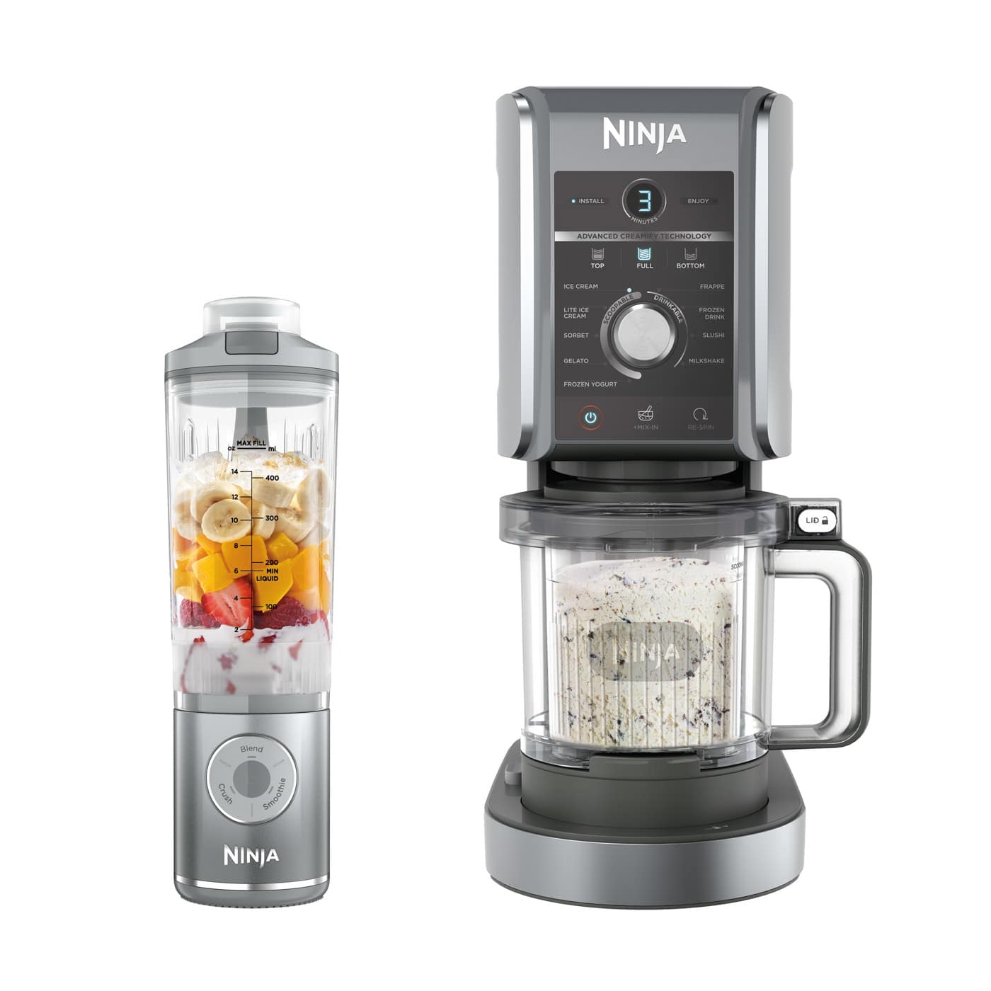 Meet our Ninja Exclusive Bundle: CREAMi Ice Cream Maker & Blast Max Portable Blender.